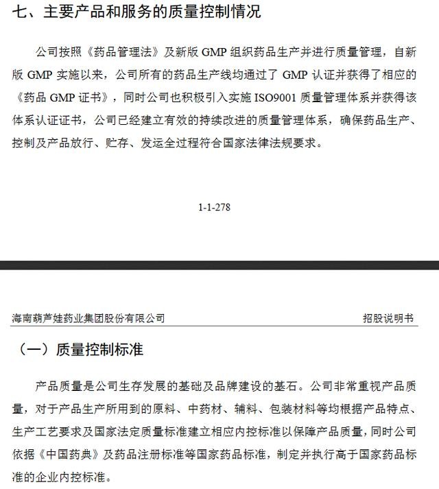 这一系列的药品生产质量问题和葫芦娃药业的招股说明书中的措辞存在天壤之别!